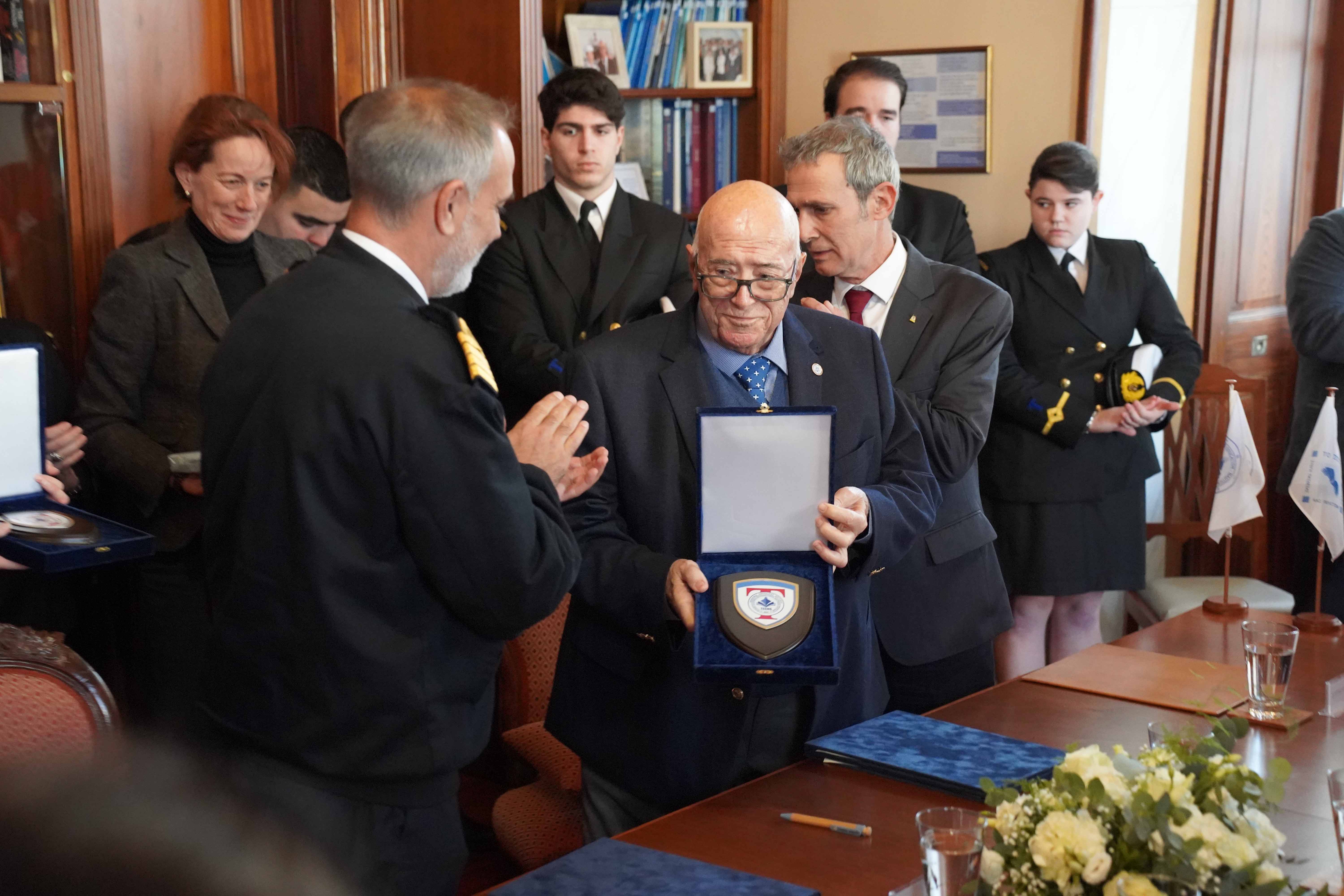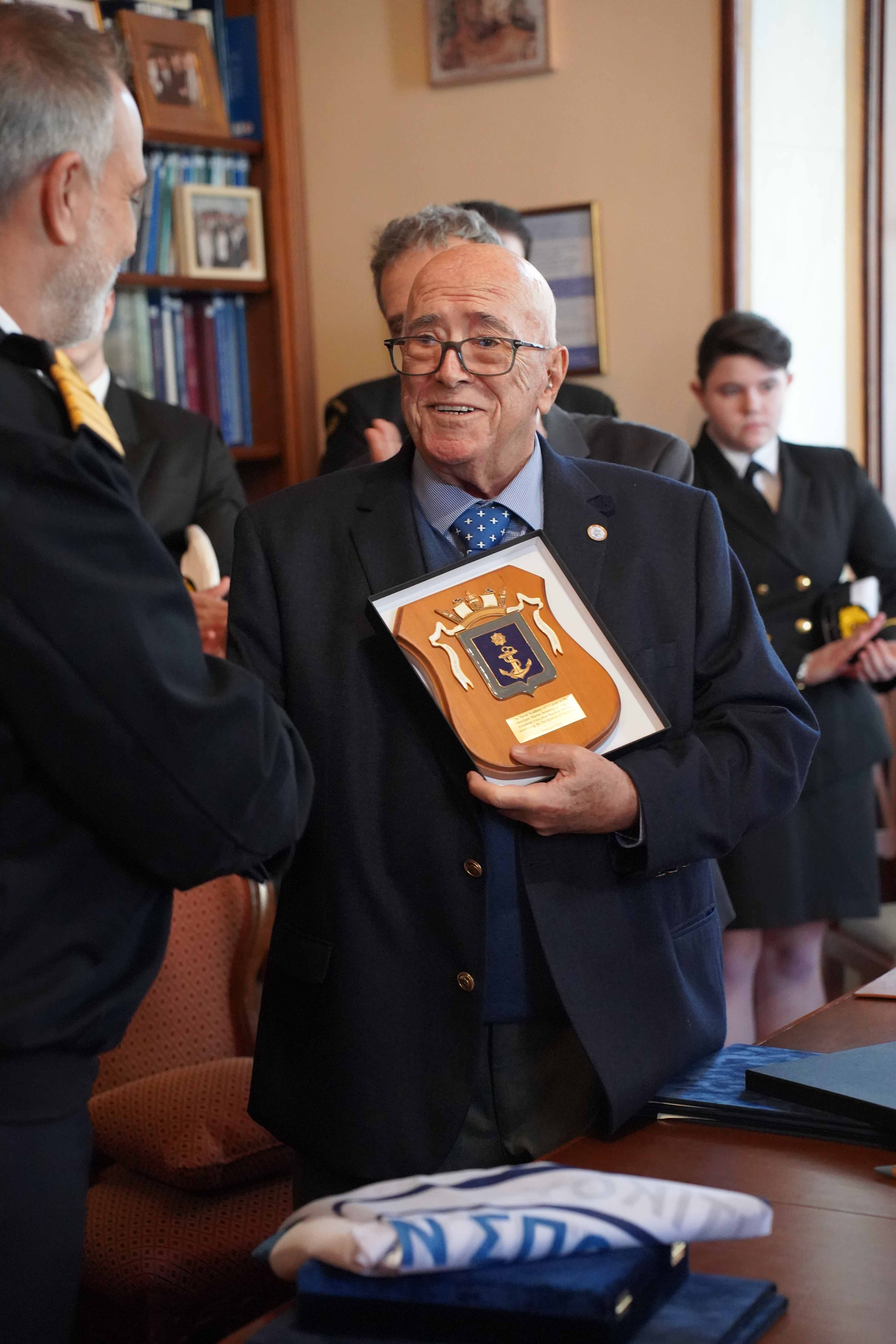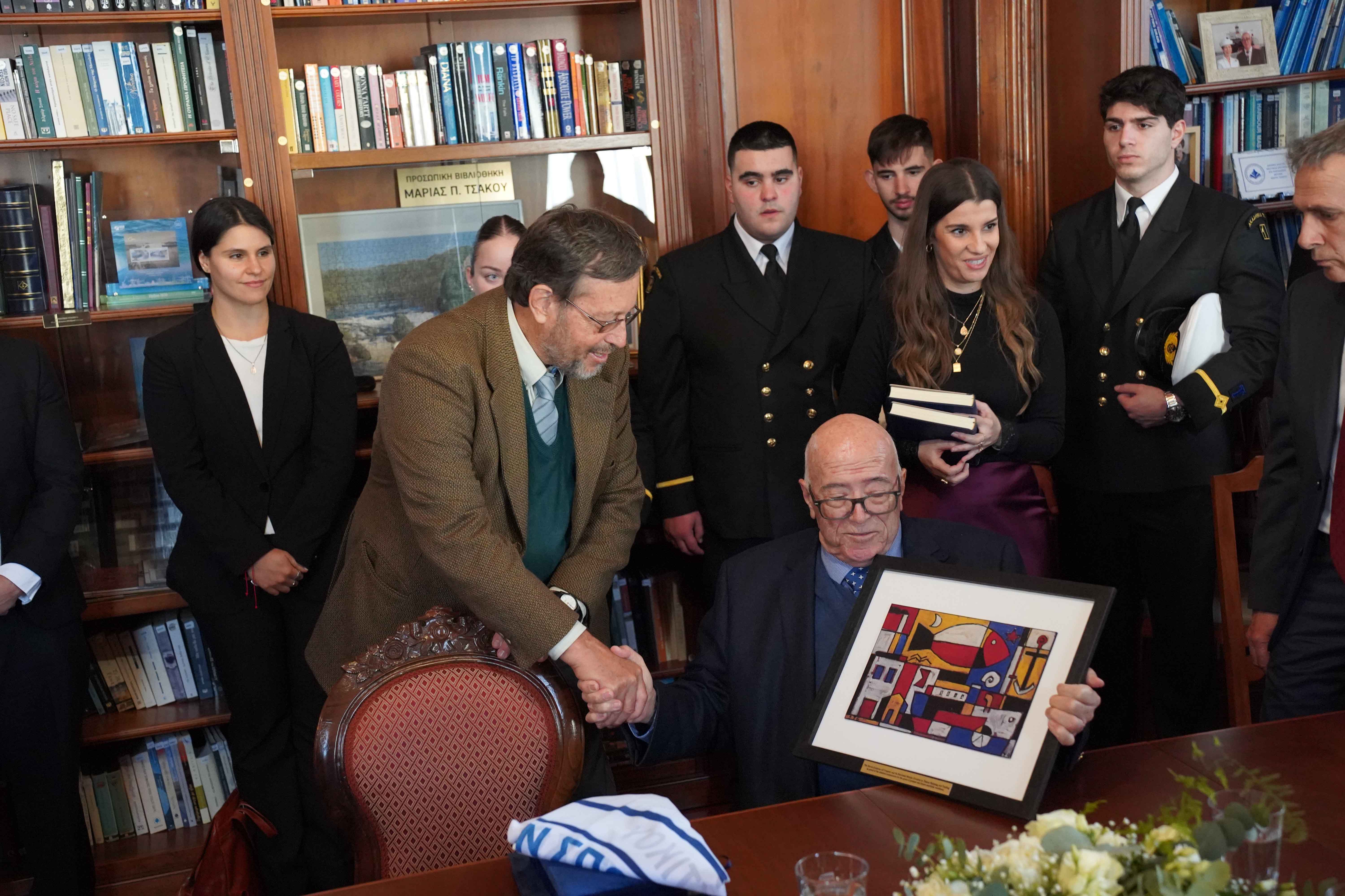 Νο.7: Δωρεά αναμνηστικού πίνακα προς την Ακαδημία Ε.Ν. ΤΕΕΝΣ. Αριστερά ο κύριος Joaquin Manfredo Schmidt Lindmayer, Διευθυντής του Τμήματος της Ακαδημίας Εμπορικού Ναυτικού της Ουρουγουάης και δεξιά ο Ιδρυτής της ιδιωτικής Ακαδημίας ΕΝ Χίου & του ομώνυμου Ομίλου Εταιρειών Καπτα Παναγιώτης Ν. Τσάκος.