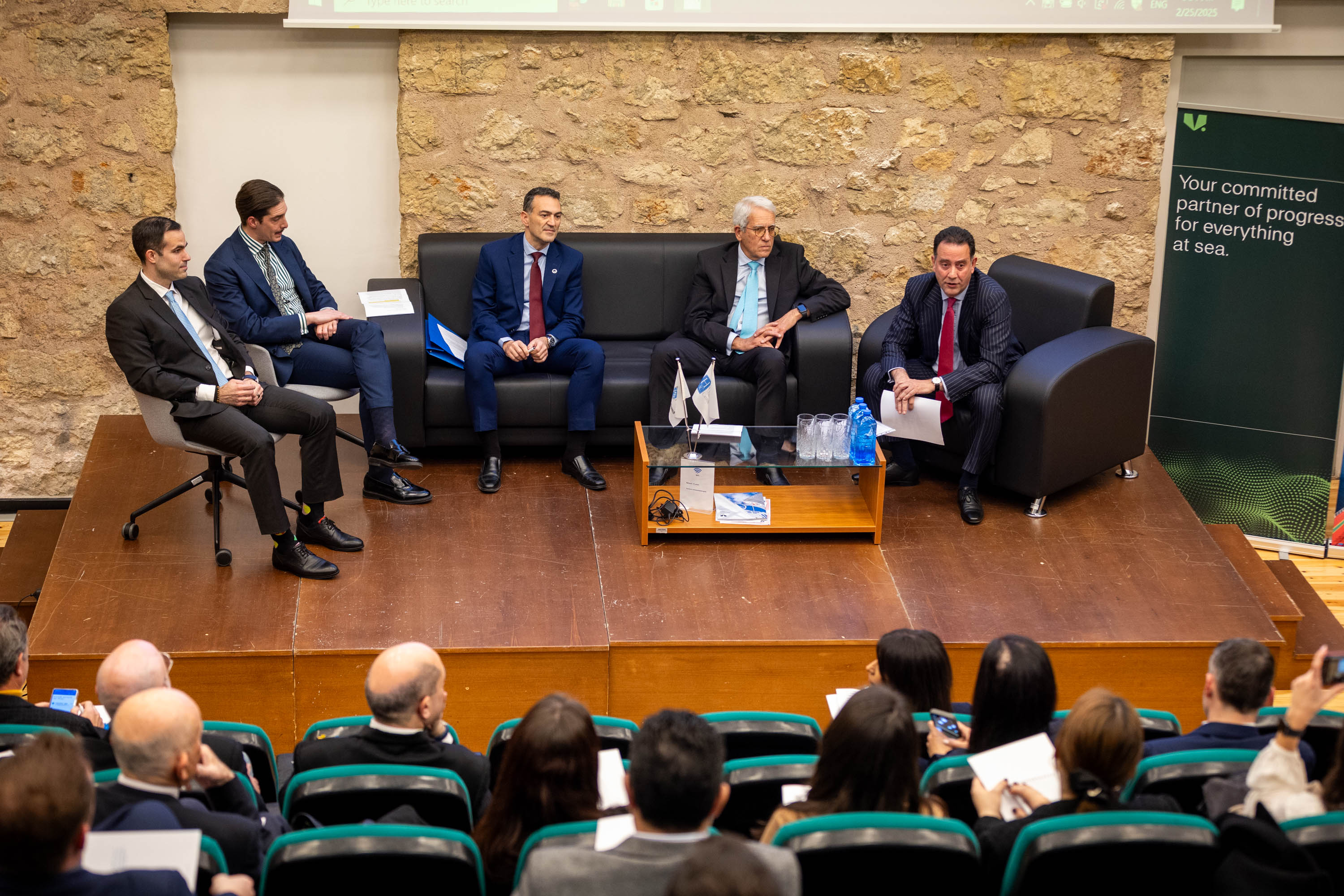 Τη συζήτηση συντόνισε ο Χάρης Λουκόπουλος, Head of Legal της Evalend Shipping Co. Ltd, ενώ στο πάνελ συμμετείχαν διακεκριμένοι επαγγελματίες από τον ναυτιλιακό και χρηματοοικονομικό τομέα: