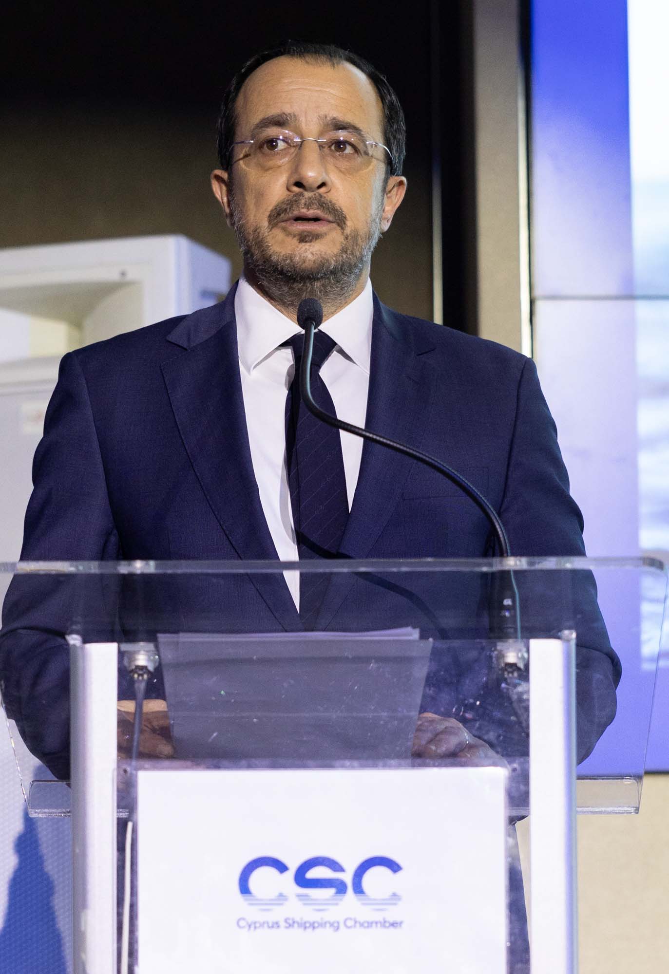 Στην ομιλία του, ο Πρόεδρος της Κυπριακής Δημοκρατίας, εξέφρασε την εκτίμηση της Κυβέρνησης για τη γόνιμη και διαχρονική συνεργασία με το Επιμελητήριο και τη σημαντική του συμβολή στην καθιέρωση της Κύπρου ως κορυφαίου ναυτιλιακού κέντρου. Επίσης, υπογράμμισε τον καθοριστικό ρόλο του Επιμελητηρίου στην προώθηση και εκπροσώπηση της Κυπριακής Ναυτιλιακής Βιομηχανίας, τόσο σε εθνικό όσο και σε διεθνές επίπεδο.