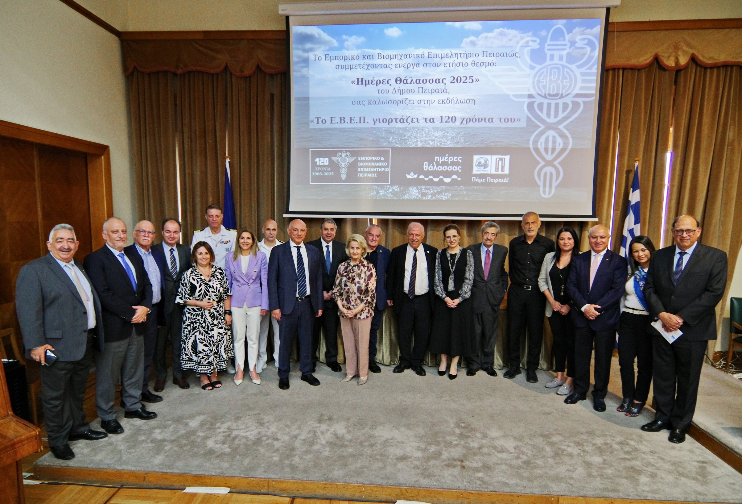 «Το Ε.Β.Ε.Π. γιορτάζει τα 120 χρόνια του, στο πλαίσιο των εορταστικών εκδηλώσεων των Ημερών Θάλασσας 2025. Το Ε.Β.Ε.Π., που αποτελεί θεμέλιο λίθο της επιχειρηματικής ζωής του Πειραιά και της ευρύτερης περιοχής, έχει συμβάλει καθοριστικά στην ανάπτυξη και ενίσχυση της επιχειρηματικότητας στην Ελλάδα, υποστηρίζοντας τις μικρομεσαίες επιχειρήσεις, και όχι μόνο, και προάγοντας τις σχέσεις με διεθνείς αγορές και οργανισμούς. Ο εορτασμός των 120 χρόνων του Ε.Β.Ε.Π. μπορεί να είναι μια ευκαιρία να αναδειχθεί η ιστορία του, αλλά και ευκαιρία να θέσει τους στόχους του για το μέλλον, ενισχύοντας τον ρόλο του στην ελληνική επιχειρηματική κοινότητα.», ανέφερε, μεταξύ άλλων, ο πρόεδρος, Βασίλης Κορκίδης, στον χαιρετισμό του.