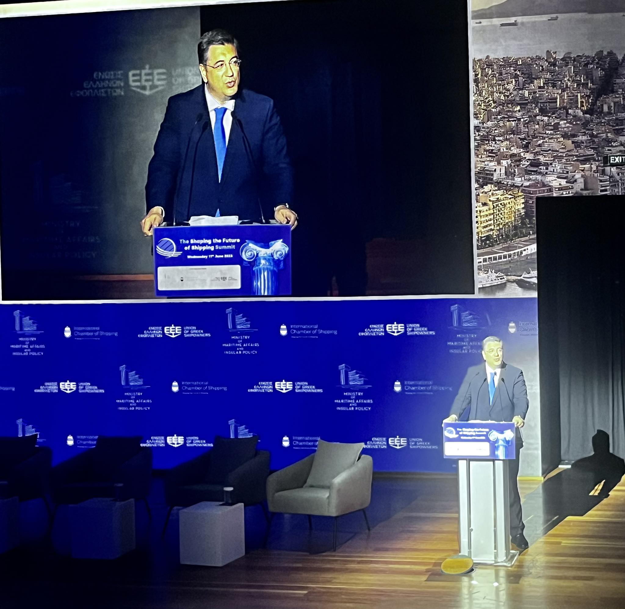 Ανέφερε επίσης ότι οι πολιτικές και οι κανονισμοί δεν πρέπει να υπονομεύουν τη στρατηγική σημασία της ναυτιλίας.