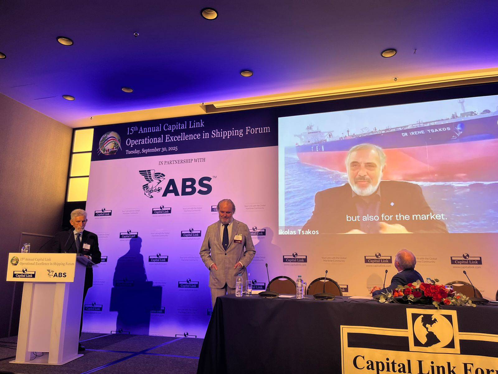 Συντονιστής: κ. Christopher J. Wiernicki, Πρόεδρος και Διευθύνων Σύμβουλος – ABS. Οι ακόλουθοι ομιλητές ανέπτυξαν τα ζητήματα της απαλλαγής από τις εκπομπές άνθρακα και της βιωσιμότητας: κ. Paolo d'Amico, Πρόεδρος – INTERTANKO (2018-2024)· Πρόεδρος – d'Amico International Shipping S.A. (BIT:DIS; OTCQX: DMCOF) • κ. Δημήτριος Φαφαλιός, Πρόεδρος – INTERCARGO (2019-2024)· Πρόεδρος / Διευθυντής – Fafalios Shipping S.A.· Γραμματέας του Διοικητικού Συμβουλίου – Ένωση Ελλήνων Εφοπλιστών • κα. Karrie Trauth, Εκτελεστική Αντιπρόεδρος Ναυτιλίας – Shell plc· Αντιπρόεδρος – Ναυτικό Επιμελητήριο Ηνωμένου Βασιλείου.