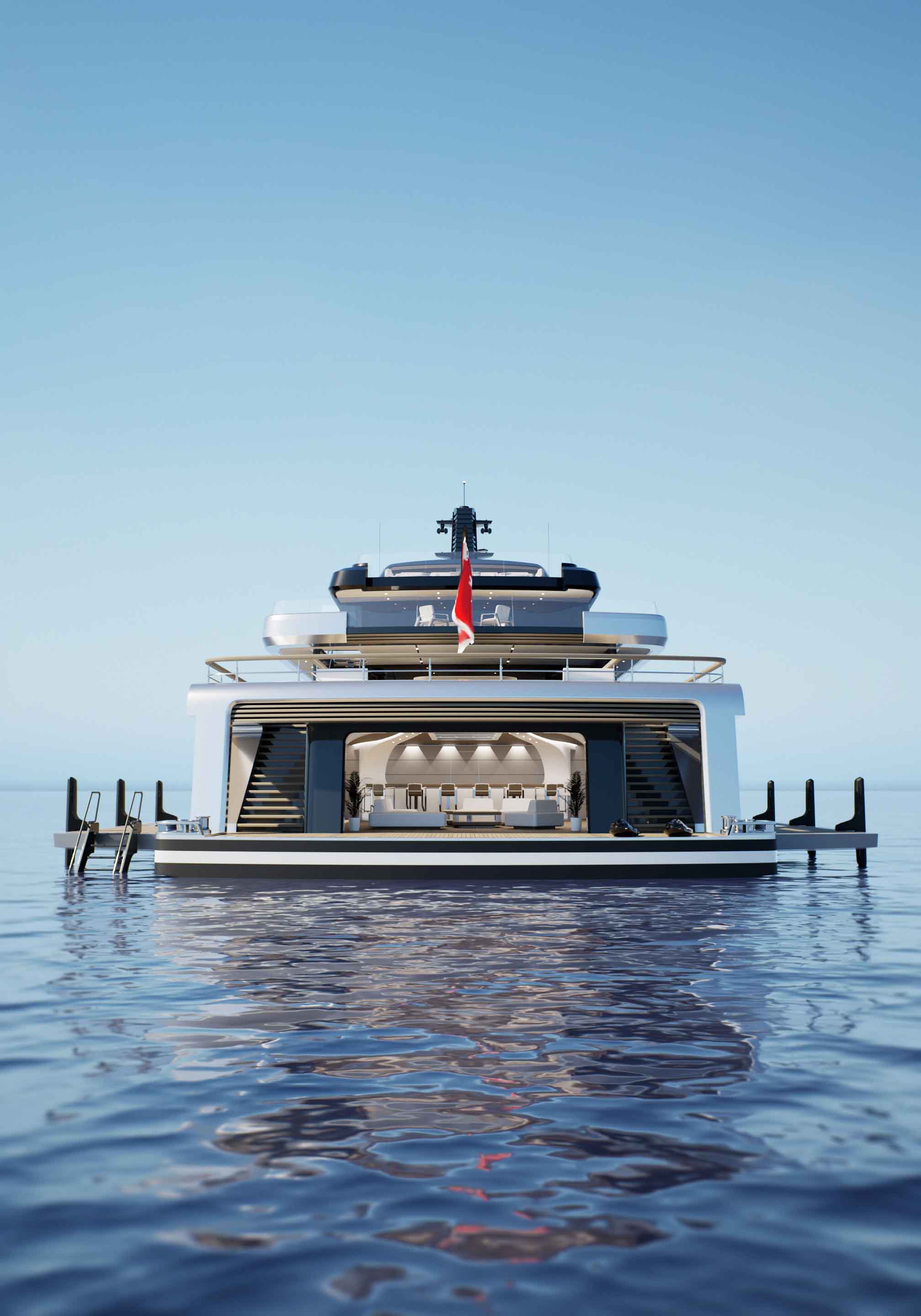 Οι εξωτερικές γραμμές του Orca αποπνέουν τη δύναμη της σκανδιναβικής μηχανικής, ενώ οι εσωτερικοί χώροι φέρουν τη σφραγίδα της μεσογειακής φιλοξενίας, προσφέροντας προσαρμόσιμες λύσεις, beach-club με ανακλινόμενες πλευρές και μια εντυπωσιακή πισίνα στην πρύμνη.