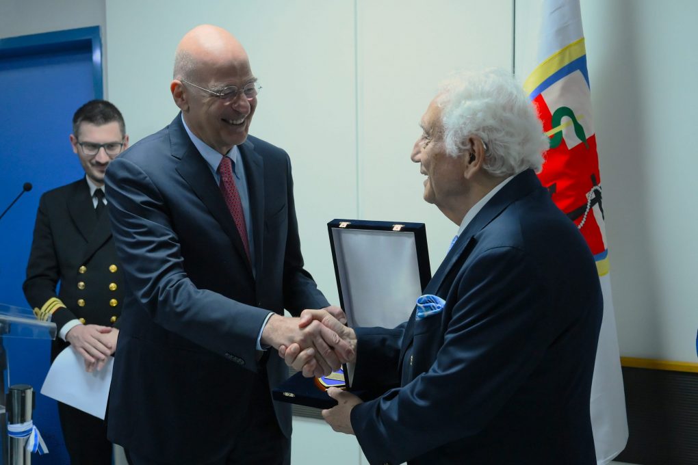 Κατά τον χαιρετισμό του, ο Υπουργός κ. Δένδιας εξήρε την προσωπικότητα του κ. Ευάγγελου Αγγελάκου, πλοιοκτήτη, πρώην Δημάρχου Οινουσσών και Αρχιπλοιάρχου επί τιμή του Πολεμικού Ναυτικού. Τόνισε ότι η δωρεά αυτή αποτελεί συνέχεια της μακράς και στέρεης παράδοσης των Ελλήνων εφοπλιστών που στέκονται αρωγοί στην Πατρίδα και τις Ένοπλες Δυνάμεις.