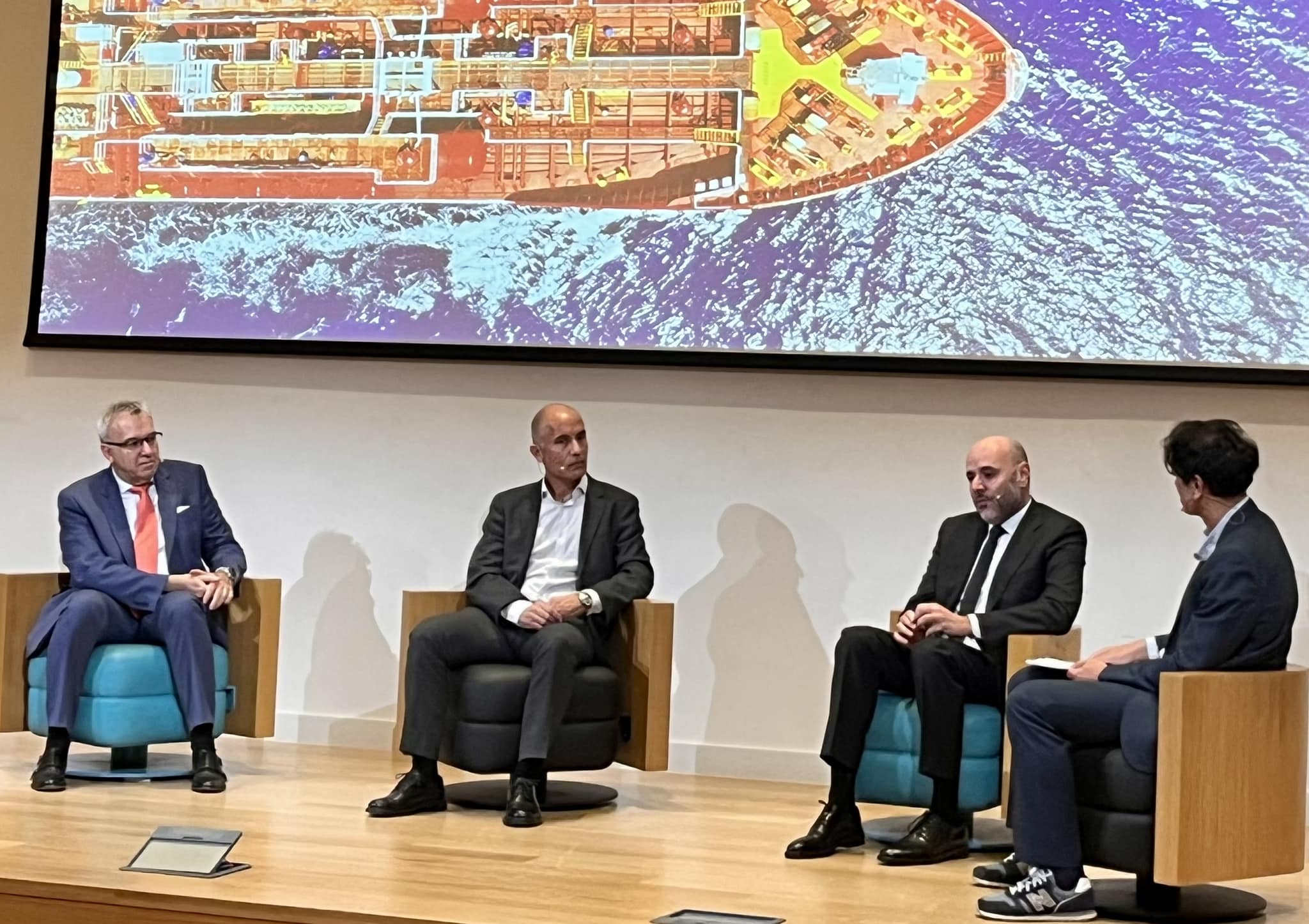 The topic discussed Konstantinos Karathanos, Chief Operation Officer, Gaslog, Stavros Niotis, Chief Sustainability Officer, Prime Marine Stian Aakre, General Manager, Technical & R&D, Wärtsilä Exhaust Treatment, Zongfei Liu, Principal Engineer of Platform Technology, Equinor.
