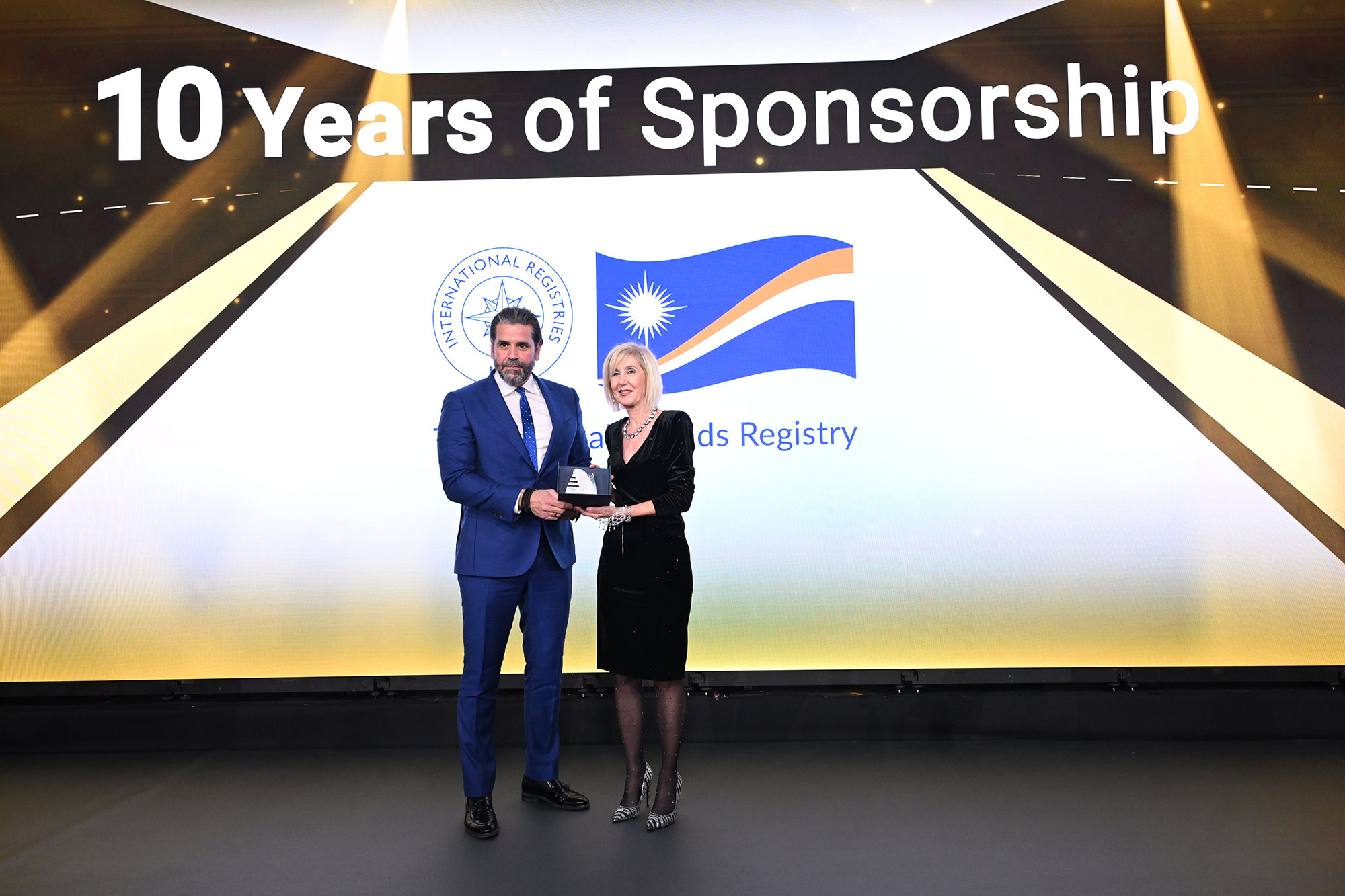 The Greek Shipping Awards thanked all the Greek and international sponsors of the prestigious event, many of which have loyally supported the Awards for many years. This year saw the IRI / The Marshall Islands Registry complete 10 years of support for the event, a milestone recognised in the form of an honorary statuette presented to the sponsor.