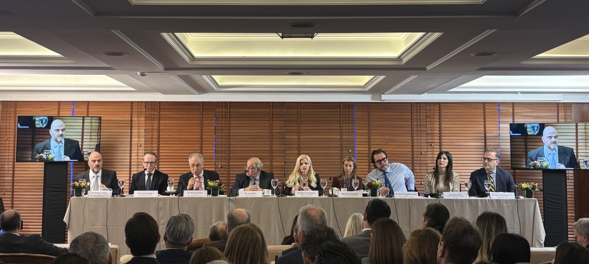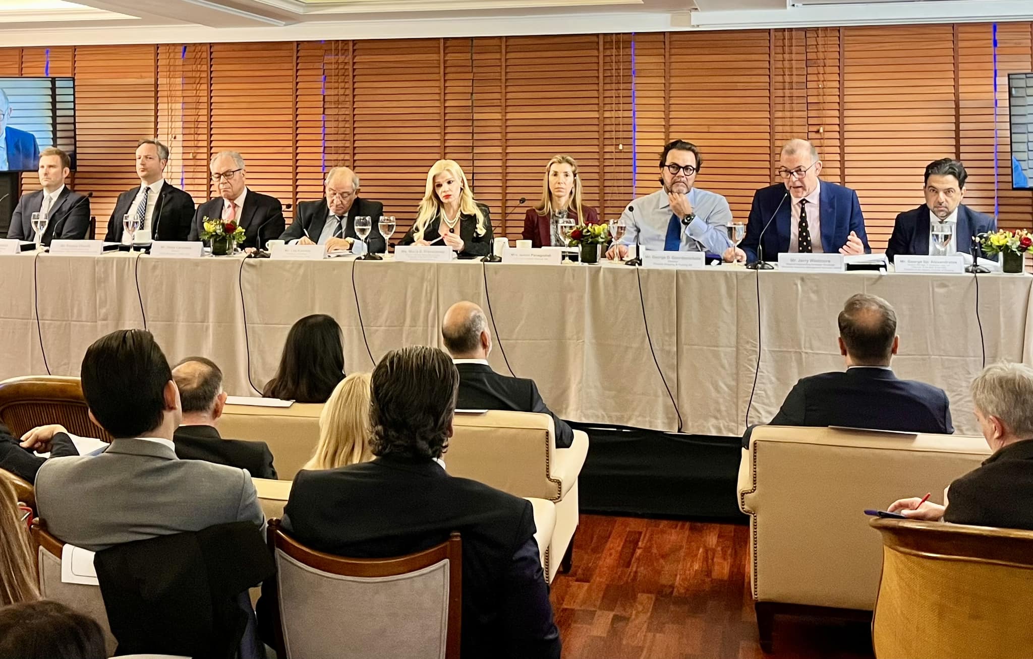 The event was Addressed by Mr. George Sp. Alexandratos- General Manager of Apollonia Lines S.A- Chairman of the BoD of the PMC and President of Hellenic Chamber of Shipping, Ms. Maria S. Prevezanou- Director of Evmar Marine Services Ltd.- Treasurer of the BoD of the PMC / Organiser of the Conference and Introduction by the Chairman: Mr. Lou Kollakis honorary chairman of Chartworld Shipping Corp.