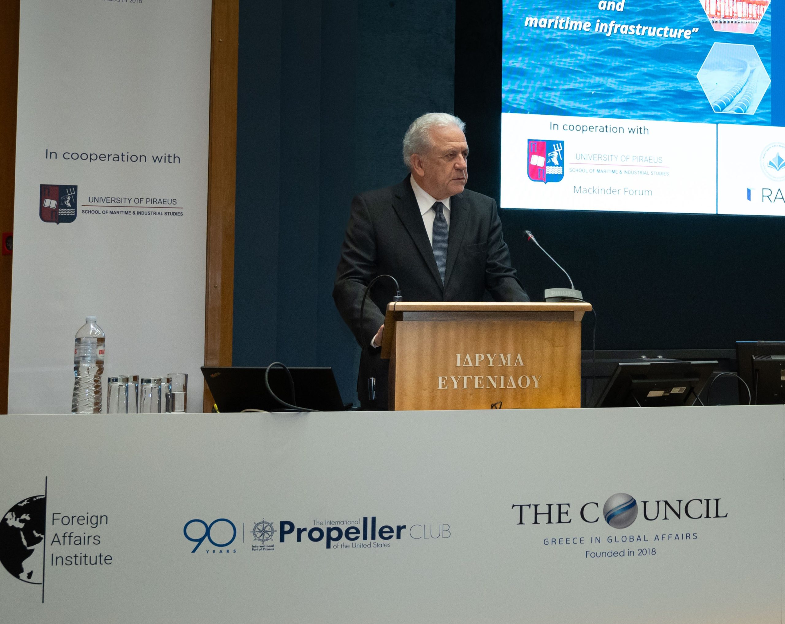 The conference was a joint initiative of the Propeller Club, Port of Piraeus, the Council for International Relations-Greece and the Foreign Affairs Institute, in cooperation with the School of Maritime and Industrial Studies at the University of Piraeus and the Mackinder Forum.