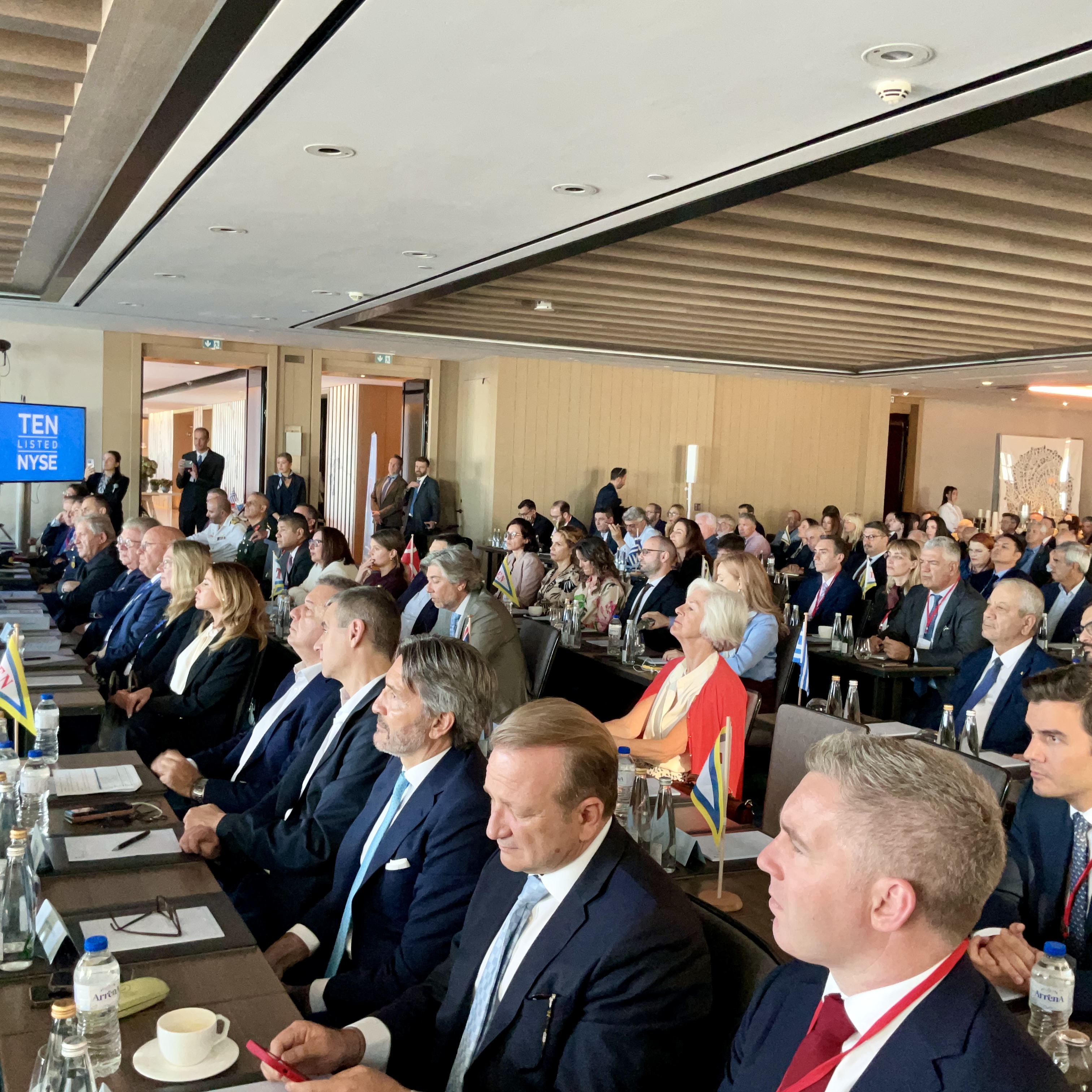 TEN, the U.S.-listed shipping giant, recently held its annual strategy meeting, bringing together industry leaders, analysts, and government officials to discuss critical issues shaping the tanker market and the future of maritime shipping. The event featured a series of insightful presentations, culminating in a memorable evening with stunning views of the Saronic Gulf.