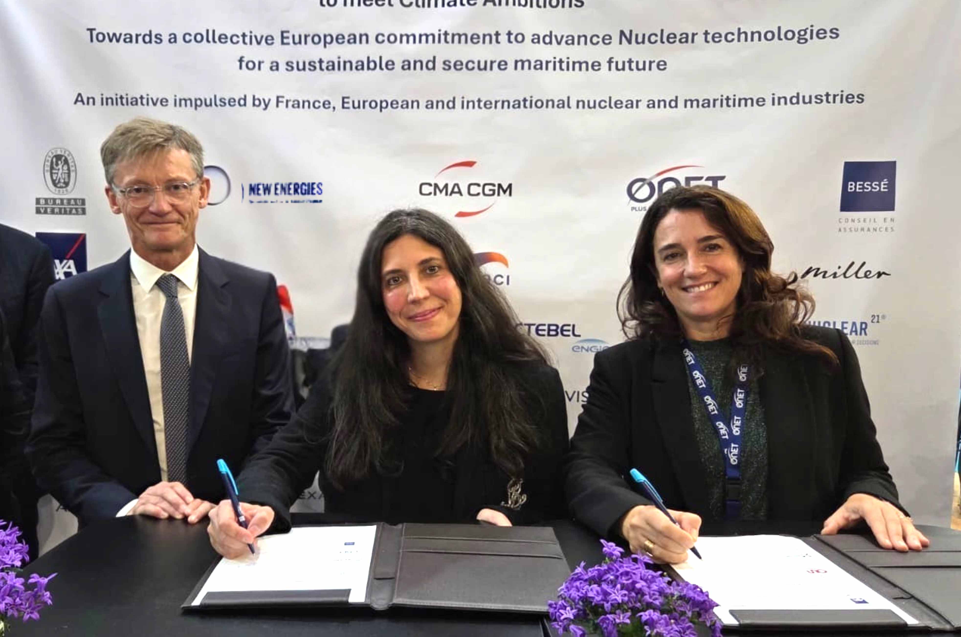 Émilie de Lombarès, Chairwoman of the Executive Board at Onet Group, declared: “This declaration of cooperation emphasizes the need for coordinated international efforts to address the technological, regulatory, societal, and financial challenges associated with integrating civil nuclear power into the maritime sector. Given Onet Group has supported the French nuclear sector for around 50 years, our long-standing presence has given us a unique, hands-on understanding of the industry’s evolution. We are actively supporting several innovative projects for decarbonization, involving SMRs because we think the SMR approach is a new opportunity to re-evaluate the potential of nuclear energy for maritime industry. That is why we joined forces with Bureau Veritas, CMA CGM, Bessé as well as other international partners to invite all stakeholders in the nuclear and maritime sectors to join this collective movement as to build a sustainable, secure, and resilient maritime future, showcasing French and European leadership.”