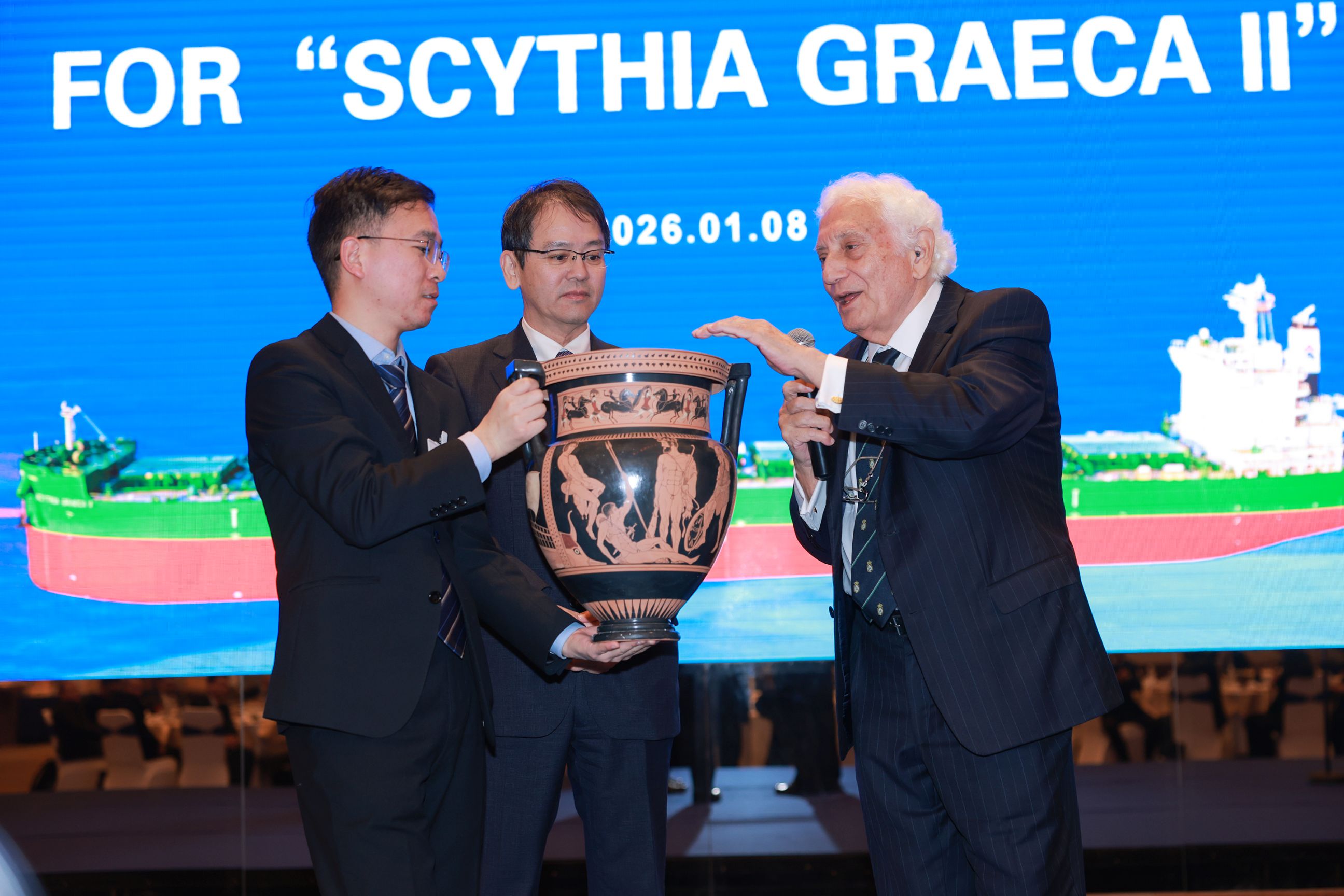 Representing the shipyard’s senior management was Mr. Junji Maeda, Senior Vice President, alongside other senior executives.