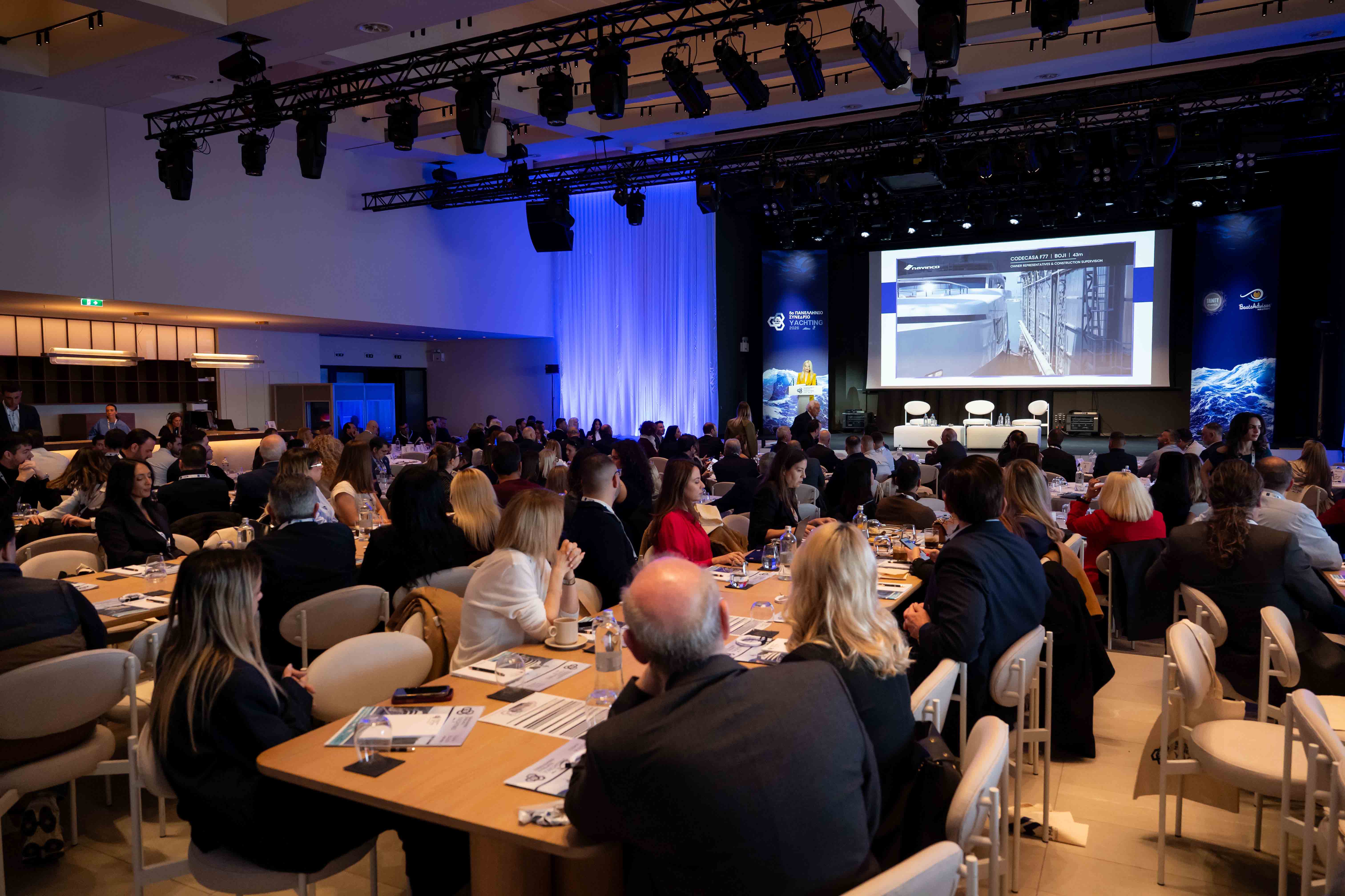 Patiniotis, founder and president of the high-tech company PYLI NET, gave a speech on “SOFT SCREEN X-RAY (an application that quantifies horizontal skills by converting human resources into measurable business value) / MEASURING, QUANTIFYING & VERIFYING THE VALUE OF HUMAN CAPITAL IN YACHTING” provided new tools for evaluating human resources. Similarly, the speech by Dimitris Randou, founder and CEO of Tallyboat Platform, on the topic of “REVOLUTIONIZING THE YACHTING INDUSTRY / TALLYBOAT PLATFORM” provided a breath of fresh air for modernization, simplifying operations, digitizing traditional workflows, and providing a user-friendly experience in yachting. Among the many interesting speeches was that of Anna Koutsokosta; Marina Filippidi - AMK ARCHITECTURE & DESIGN, on the topic of “MAKING, NOT FAKING - A HOLISTIC APPROACH TO BOAT DESIGN” in which they shared with the audience their many years of experience in hospitality, cruise, and yacht design projects in Greece and abroad.