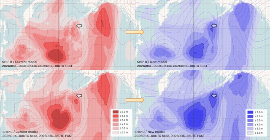 The updated model reduces wave height prediction error by approximately 23% compared to conventional methods, based on analysis of forecast performance up to seven days ahead. This enables earlier identification of developing weather systems and more reliable voyage planning, while improving detection of rapidly intensifying events including severe low-pressure systems and tropical cyclones. Weathernews has also confirmed that its wave height predictions outperform those of major global forecasting centres, including ECMWF and NCEP.