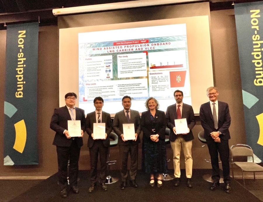 The AiP was presented at Nor-Shipping in Oslo, marking the successful completion of a Joint Development Project (JDP) between all four companies to better understand and validate the potential for WASP on these ship types. Matthieu de Tugny, President of Bureau Veritas Marine & Offshore, personally presented the AiP certificates to the representatives of HHI, TotalEnergies and MOL at the event.