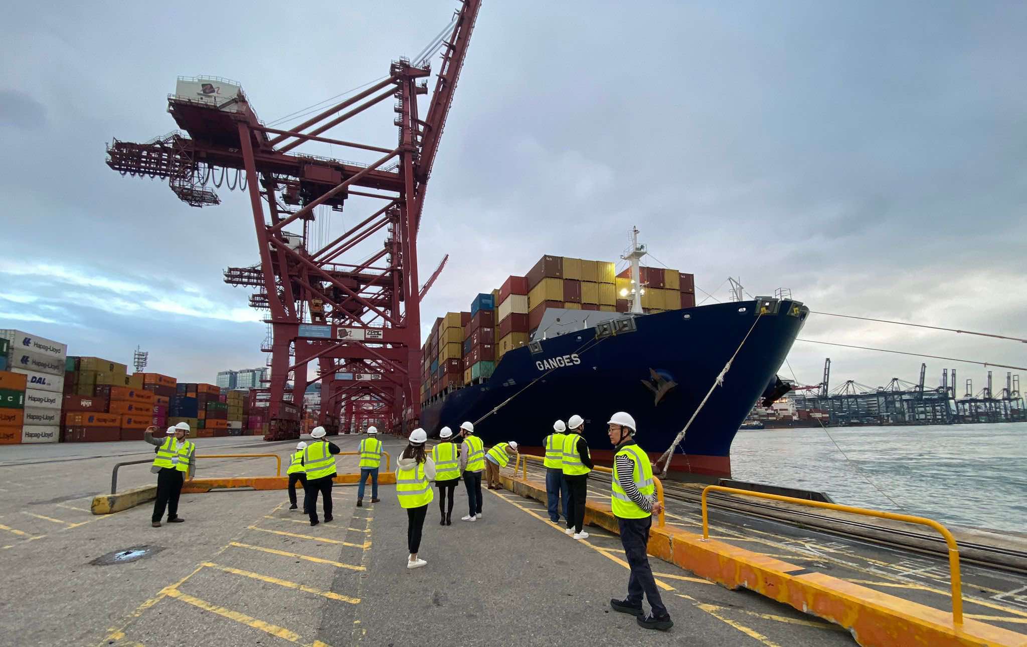 The briefing was made by Elin Wong, head of corporate affairs who welcomed the media correspondents at the terminals at Kwai Tsing. The company began port operations 52 years ago in 1972 and today owns and operates Terminals 1,2,5 & 9 (south) in Hong Kong. The port facilities have contributed to the rapid development of the economy of Hong Kong and became one of the biggest transshipment hubs worldwide. The shareholders are Wharf, China Merchants and Jebsen Group. It has a capacity of 7 million teus and the Port of Hong Kong had a throughput of 14.4 million teus in 2023. It must be noticed that in the port of Hong Kong there are another four operators. Modern Terminals has 7 container berths, 30 Quay Cranes and 3 barge berths. The company’s culture values include accountability, teamwork, and trust to achieve work life fulfillment while operational excellence is one of its brand promises. In 2022 the port and logistics industry contributed 6,2% of HK’s GDP and 175.200 jobs. The competitive edges of the Port of Hong Kong include its free port status, high operational efficiency and flexibility, and it is facing uncertainties in global economy, deployment of more mega vessels, limited yard space, and competition from nearby ports. Ms Wong mentioned the benefits of Hong Kong Seaport Alliance, and the Company’s QC & berth upgrade plan including cranes heightening, as well as Modern Terminals’ Sustainability Strategy aiming at carbon neutrality by 2050.”
